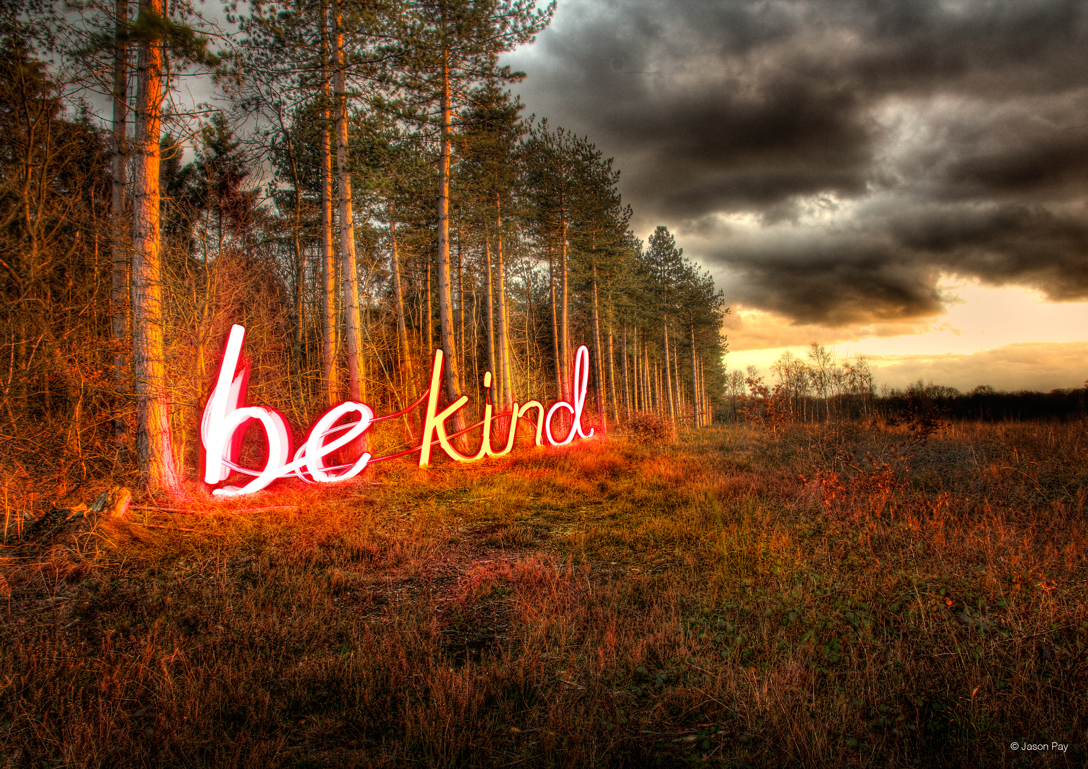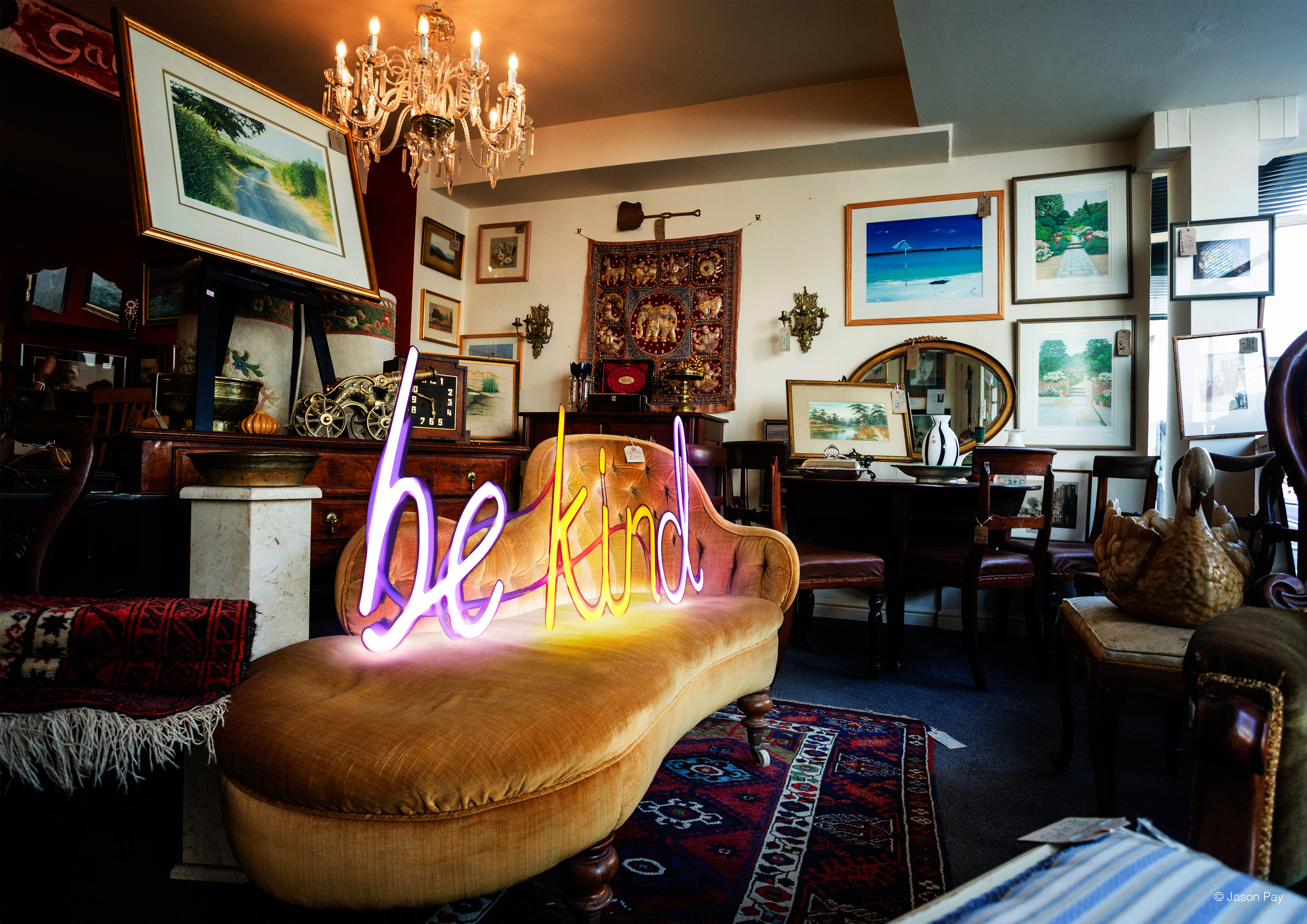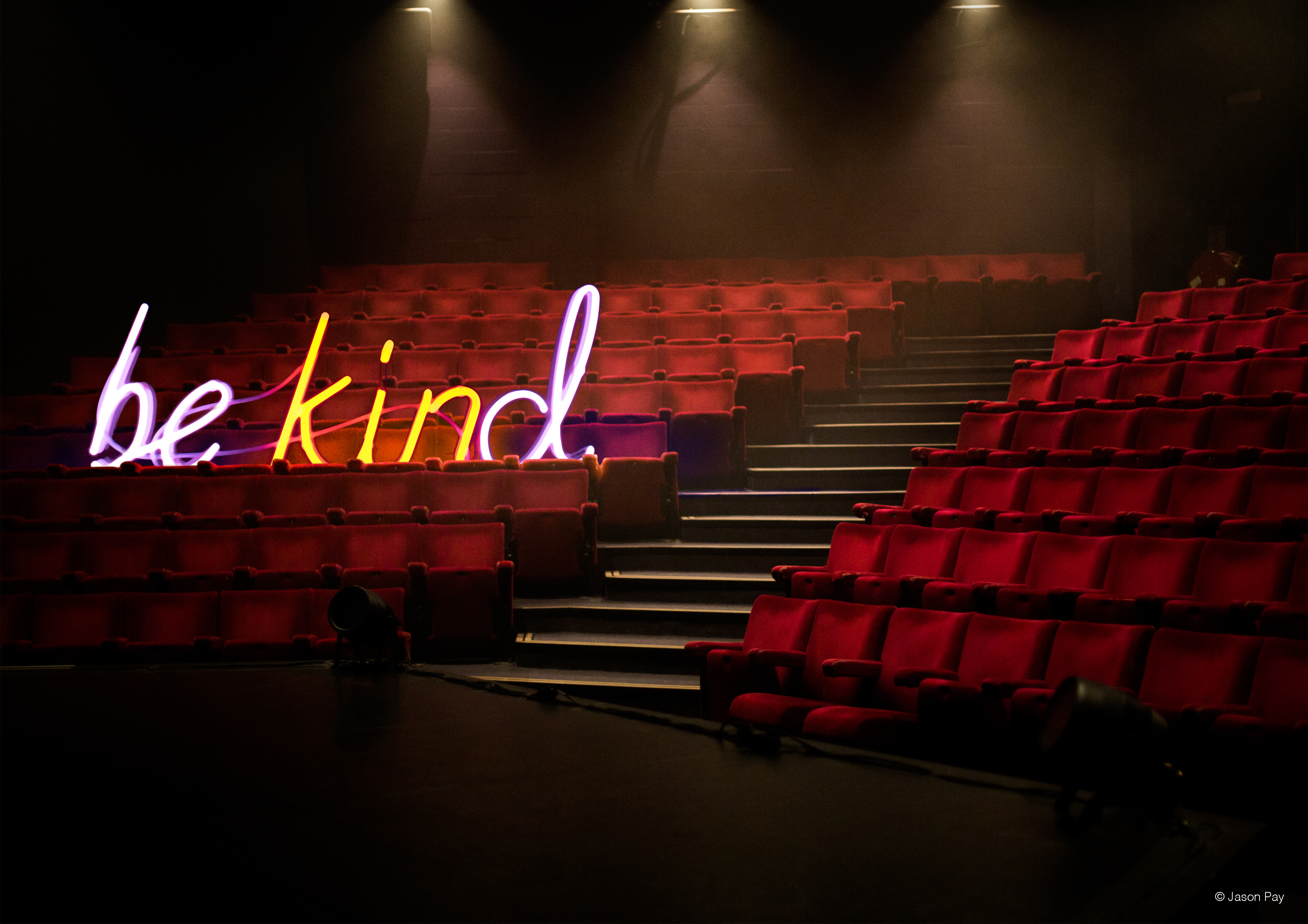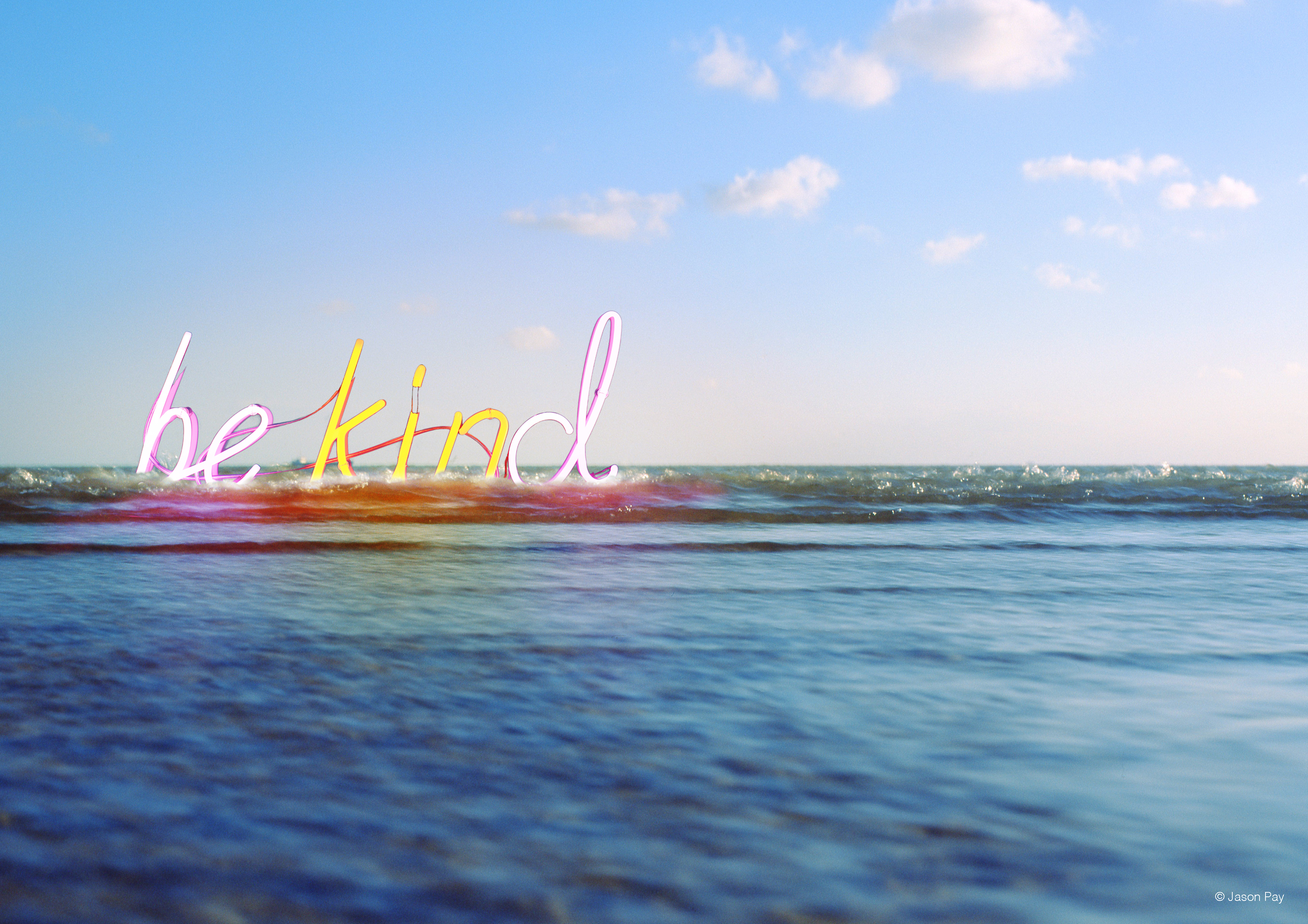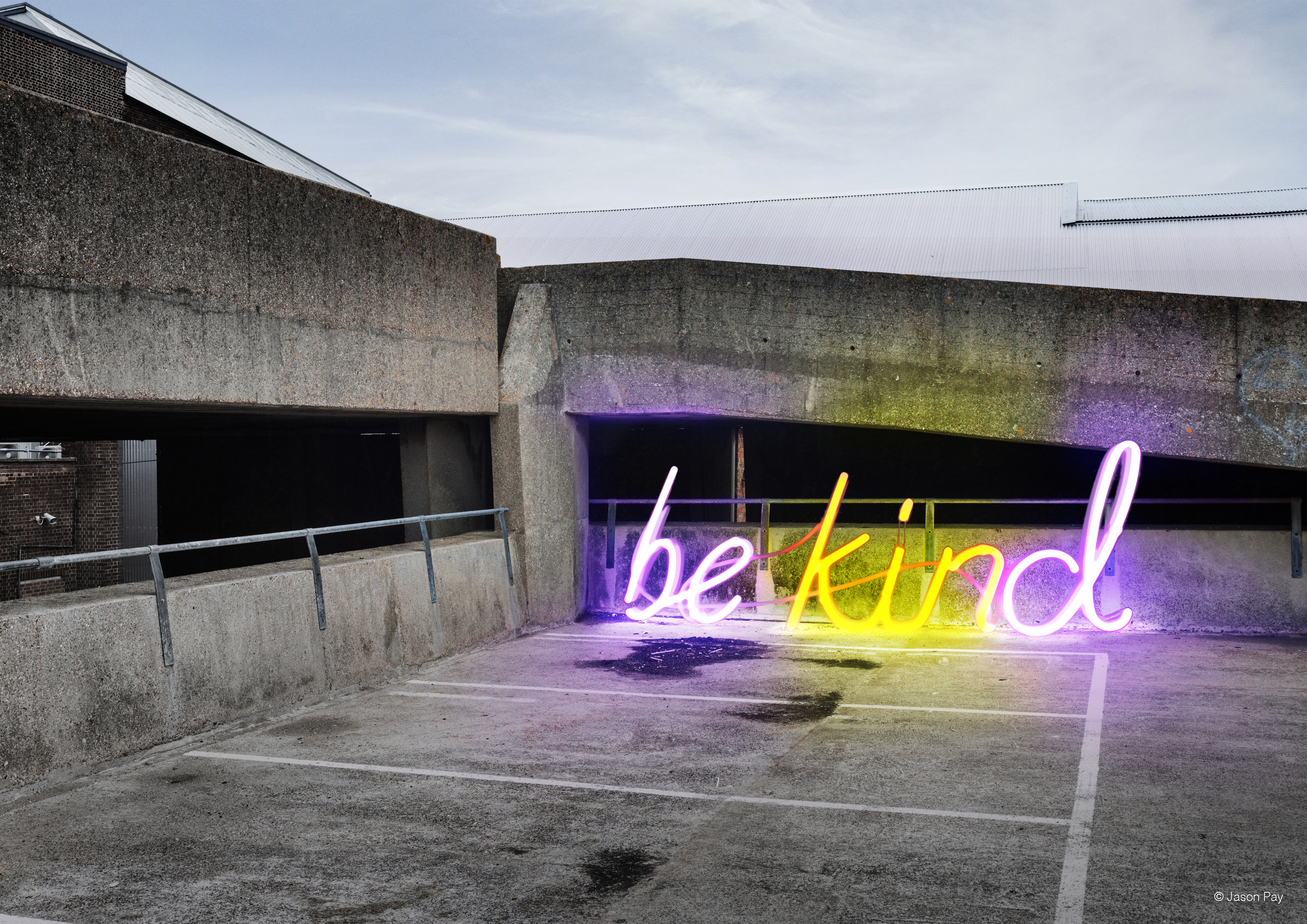 - Five posters featuring the ‘be kind’ neon sign in provocative locations by Jason Pay Studio.