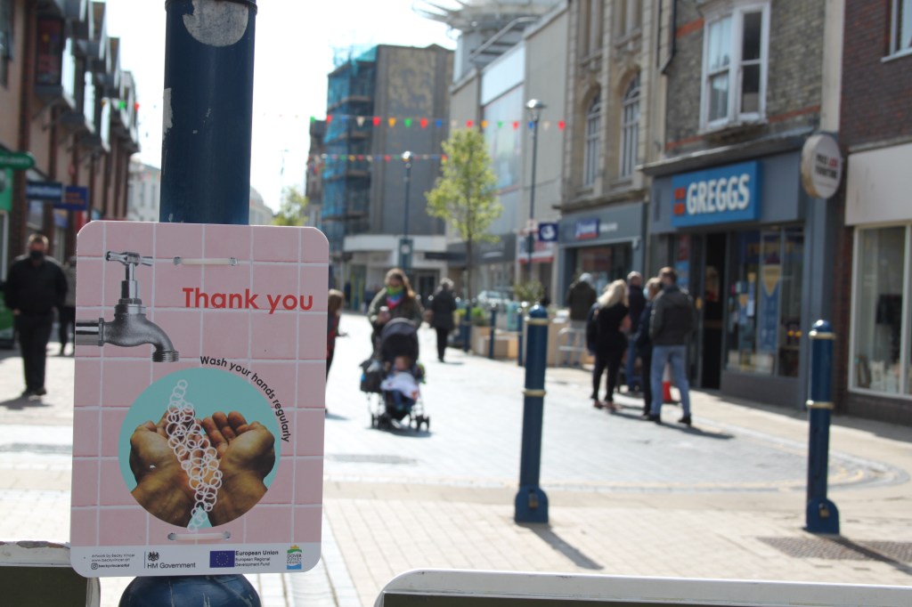 The signs aimed to brighten up the streets, thank people for following safety messages while reminding people to physically distance and regularly wash their hands.