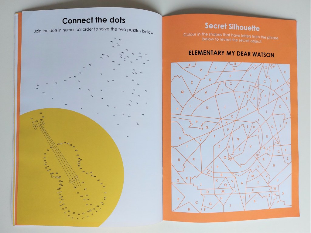 The 28 page book focuses on stories and objects found at Portsmouth Museum and Art Gallery as well as Cumberland House Natural History Museum. The collections are brought to life through puzzles, writing prompts, drawing activities, and colouring pages.