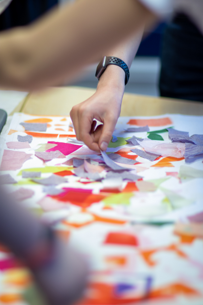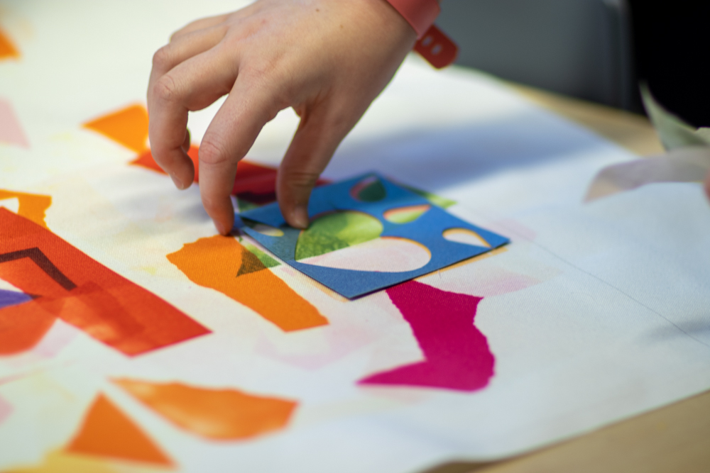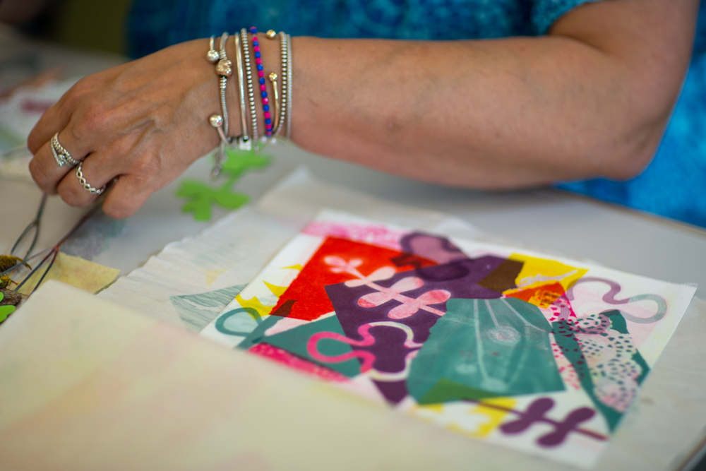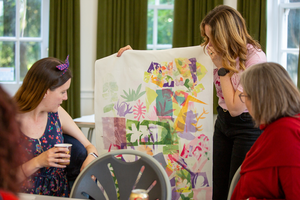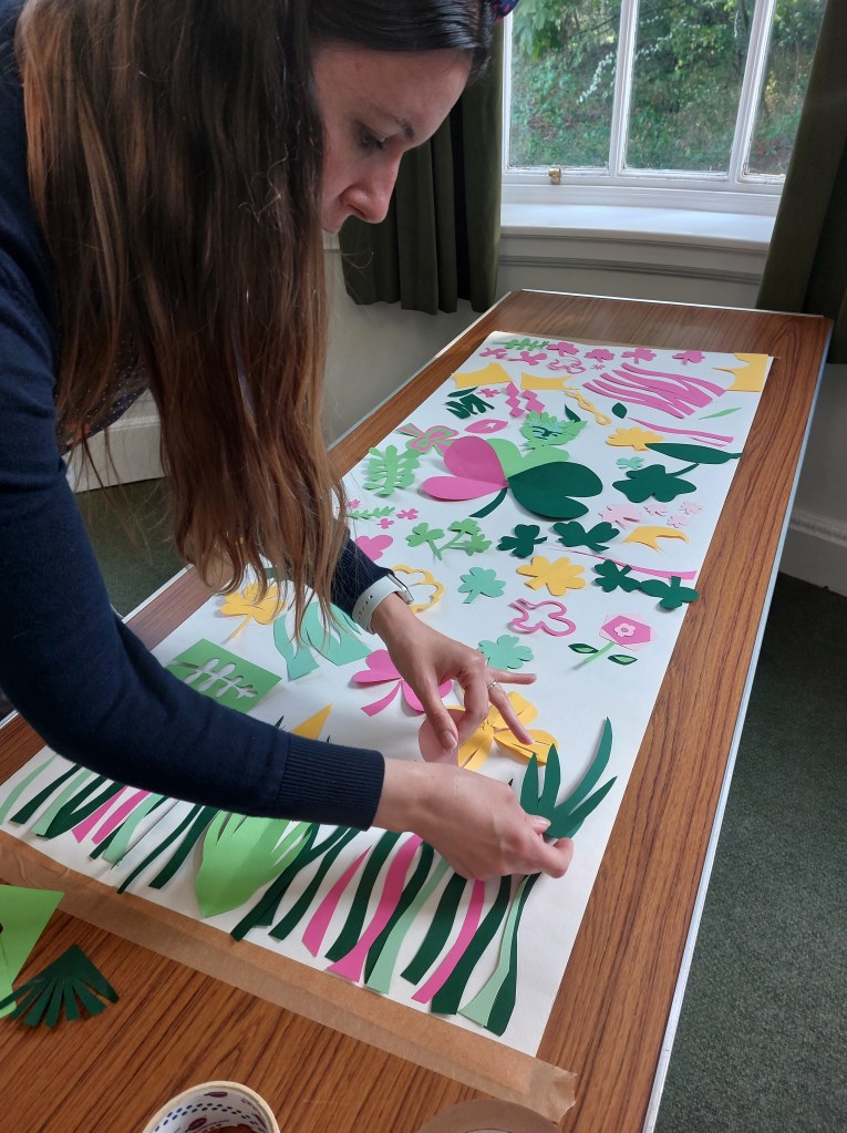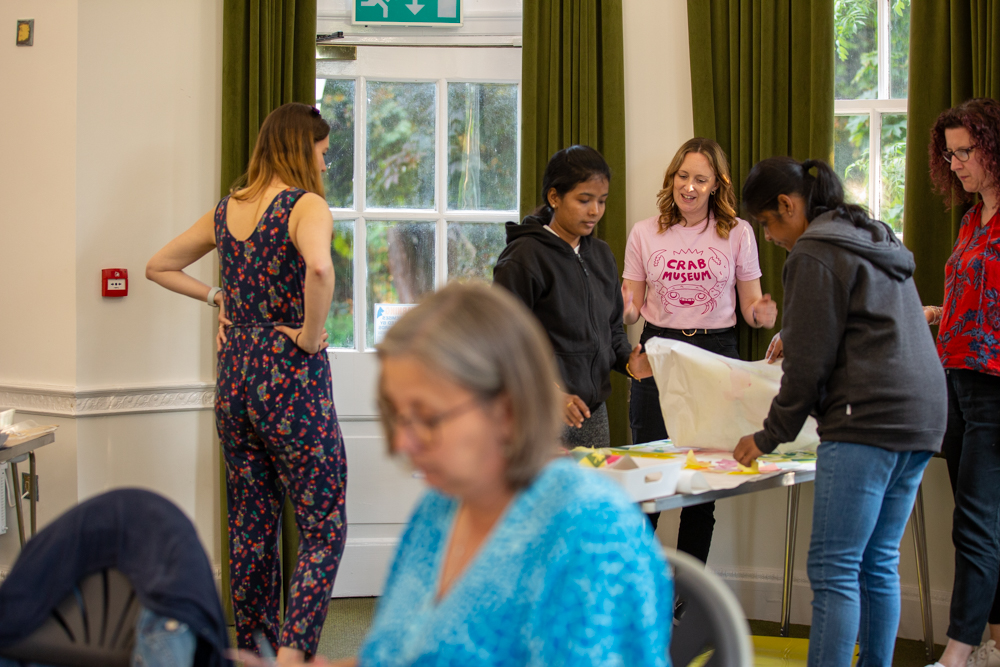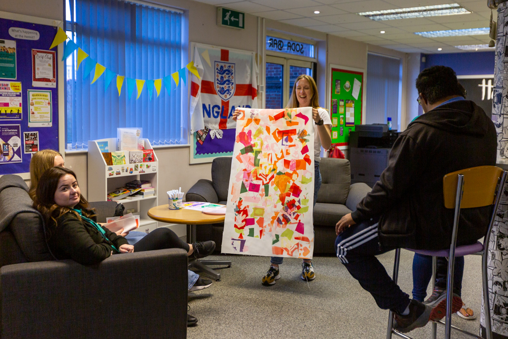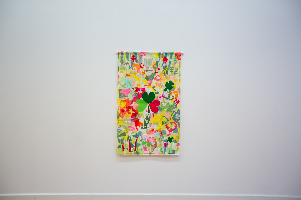 Becky hosted free workshops for adults at Merrymeade House, where the shamrock banner was designed and created. Participants used the symbol of faith, hope and love to talk about community spirit and made promises that have been included in the design.