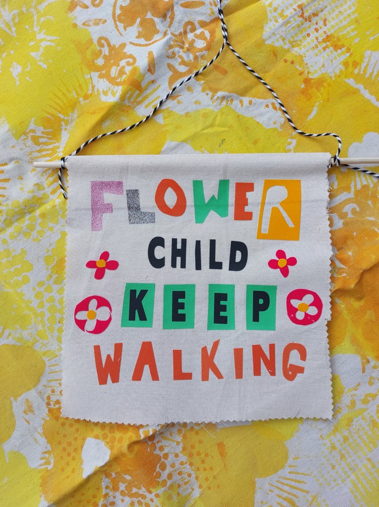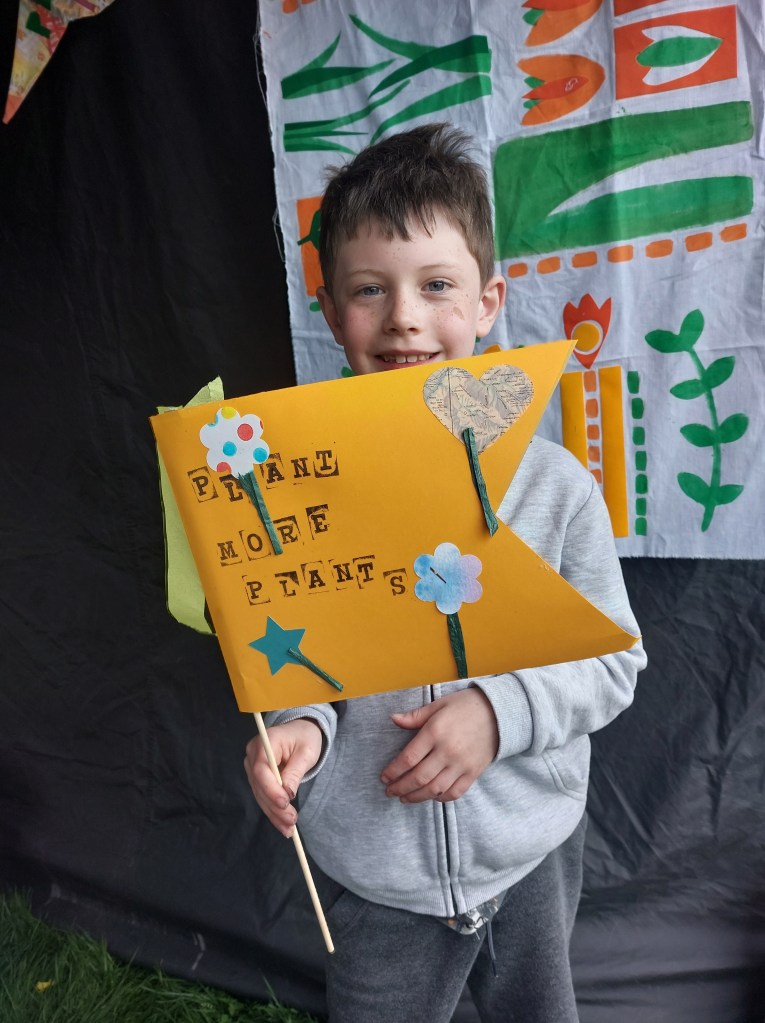 Visitors to the Coronation Festival on 8 May, at King George’s Playing Fields, contributed drawings of daffodils which signify renewal and energy, and they made everyday promises to help the environment. Becky has used both their drawings and promises to create the banner.